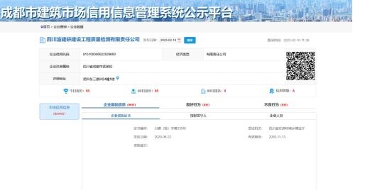 根據2021年印發的《成都市建設工程質量檢測機構及檢測人員信用評價管理辦法》,成都市建筑市場信用信息公示平臺綜合考慮檢驗檢測機構在經營期間各項表現,對獲得表彰、人員管理、設備管理、檢驗檢測環境管理、檢測能力驗證、檢測報告管理、資質運行等26個項目進行評價,力求全面客觀評價檢驗檢測機構綜合能力。信用評級結果分為4類,最高等級為A類,表示誠信度較高、各項評價指標較好、質量管理水平較好、社會信譽較高。