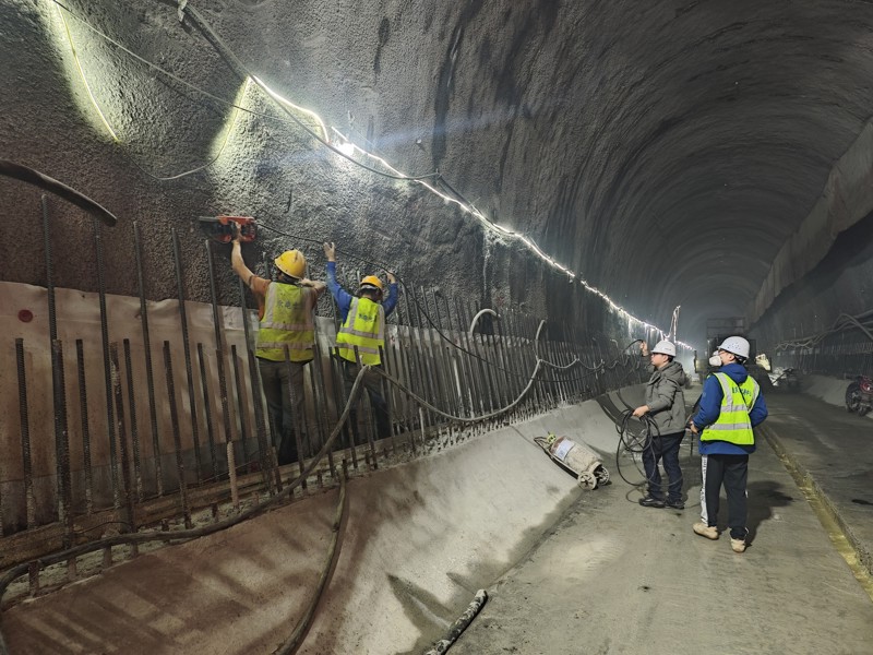 監(jiān)督檢測中心檢測人員在隧道內進行檢測作業(yè)