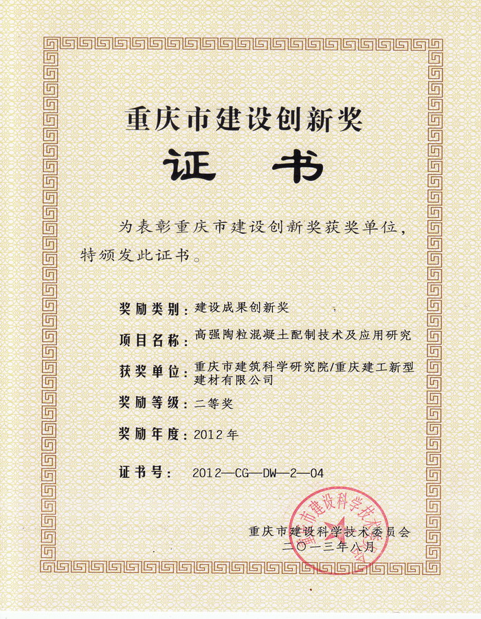 • 2011年重慶市建設創新獎