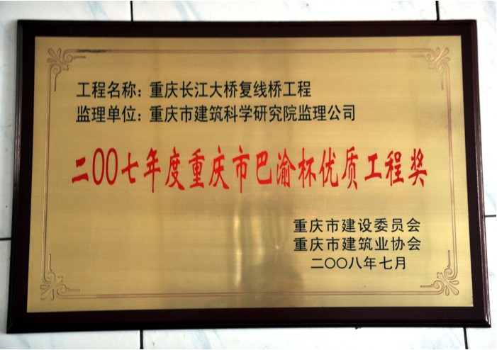 • 2007年度重慶市“巴渝杯”優(yōu)質工程獎